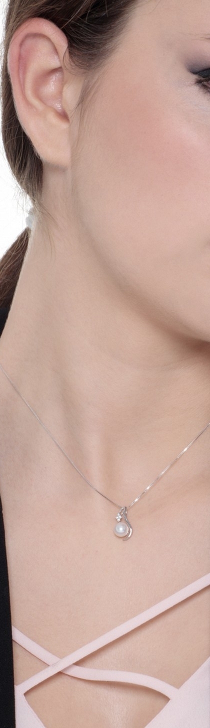 Collana con ciondolo in oro bianco 18k con diamanti e perla