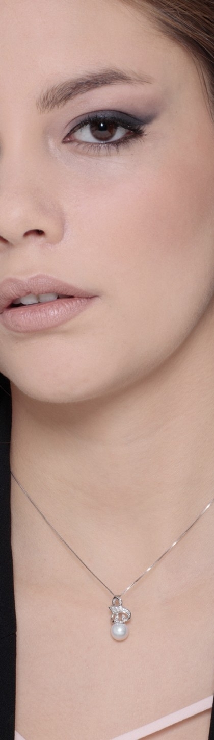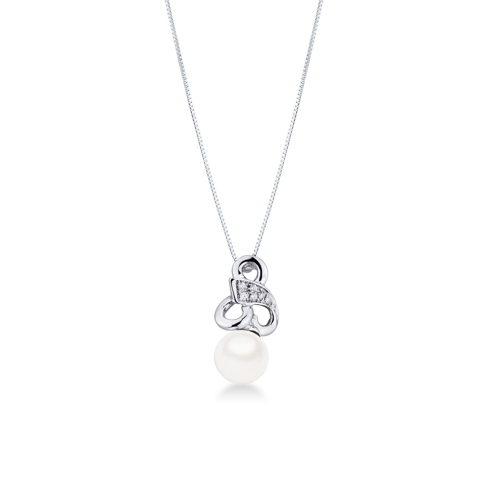 Collana con pendente intreccio in oro bianco 18k con diamanti e perla coltivata