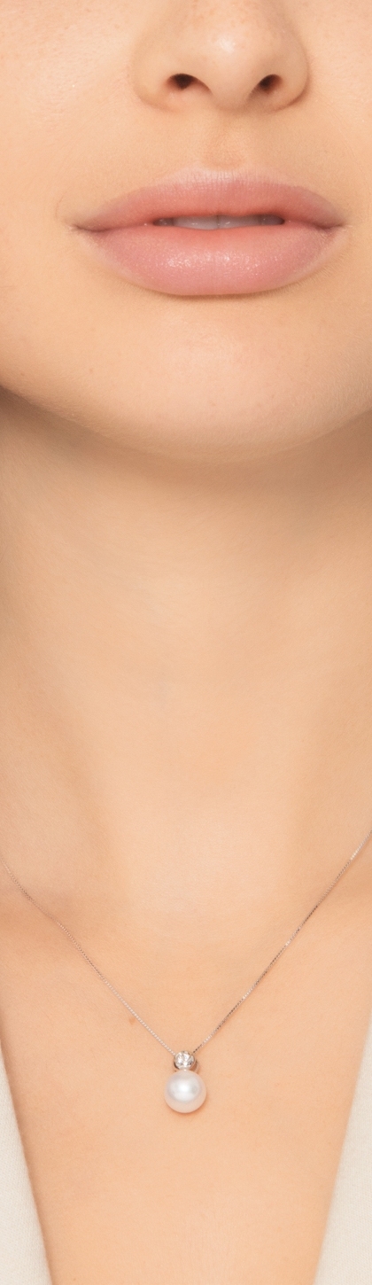 Collana con perla e diamante in oro bianco 18k
