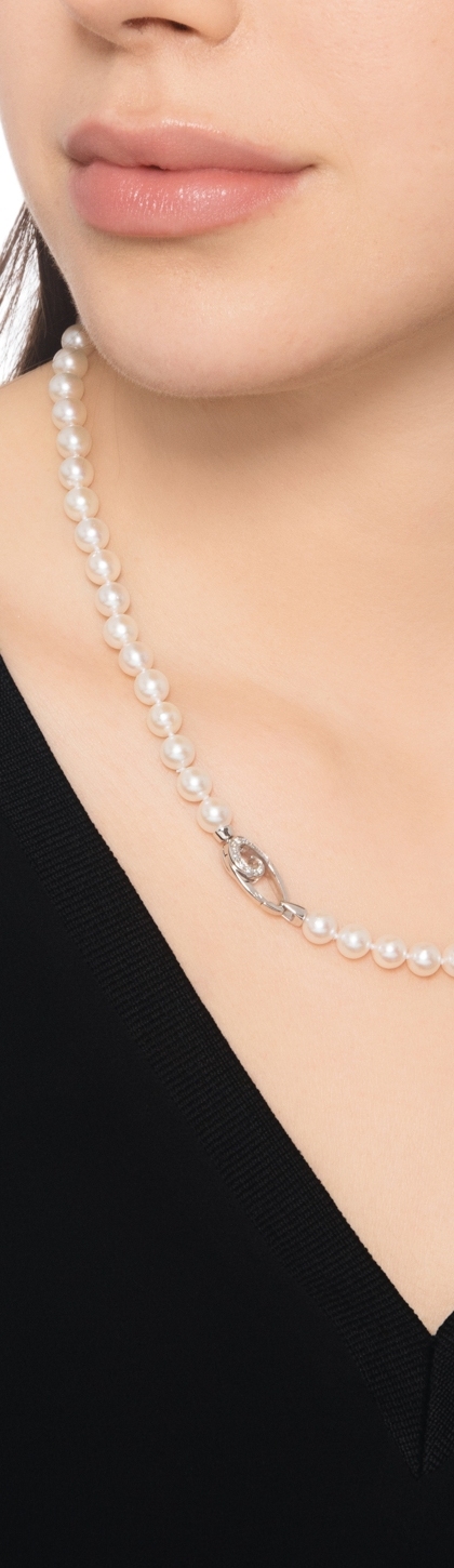 Collana di perle naturali coltivate giapponesi con chiusura in oro bianco 18k e diamanti