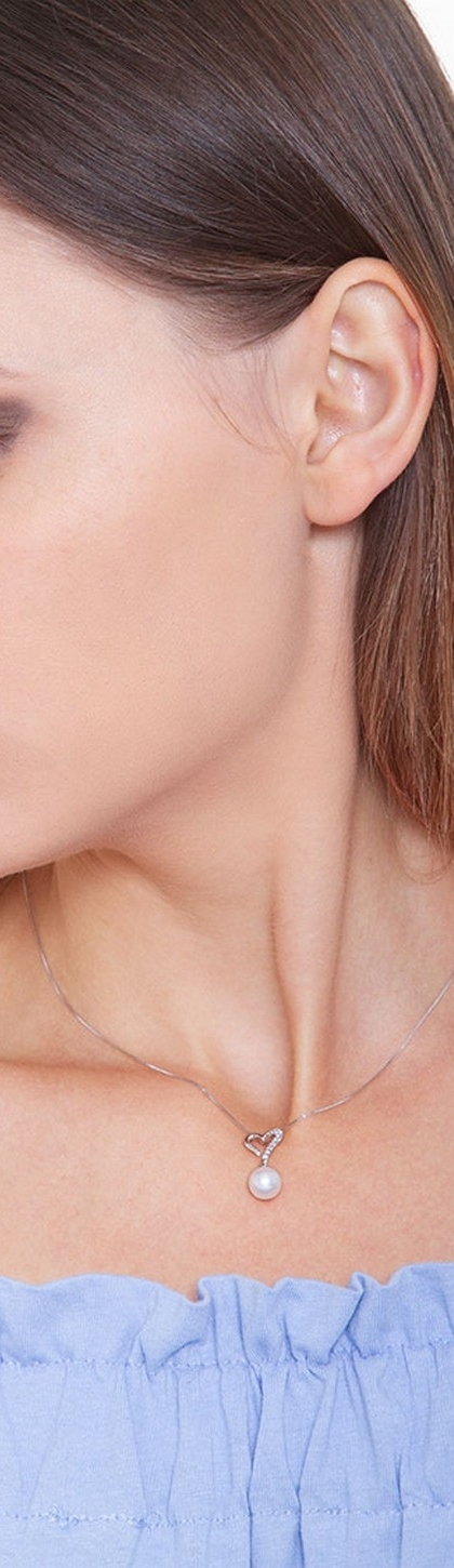 Collana in oro bianco 18k con pendente a cuore in diamanti e perla