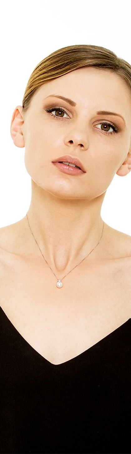Collana in oro bianco 18k con perla di circa 8.50 mm e diamante