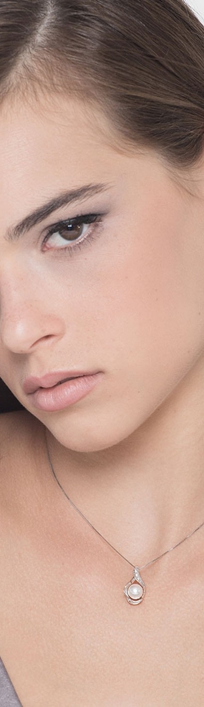 Collana in oro bianco 18k con perla naturale e diamanti a contorno
