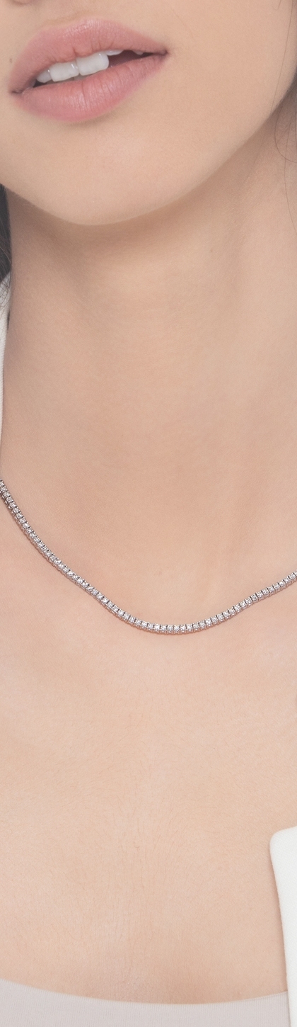 Collana girocollo tennis filo lineare in oro bianco 18k con diamanti taglio brillante