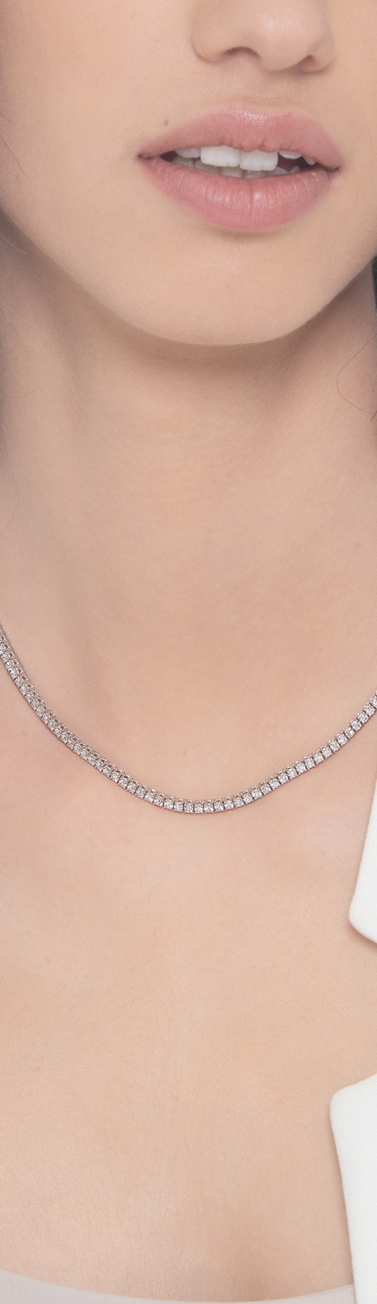 Collana girocollo tennis modello a filo lineare oro bianco 18k con diamanti