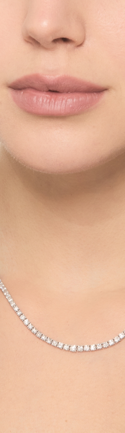 Collana tennis filo a scalare in oro bianco 18k con diamanti