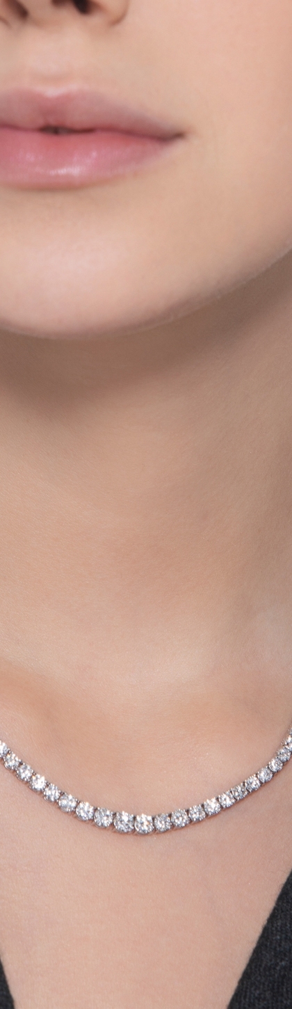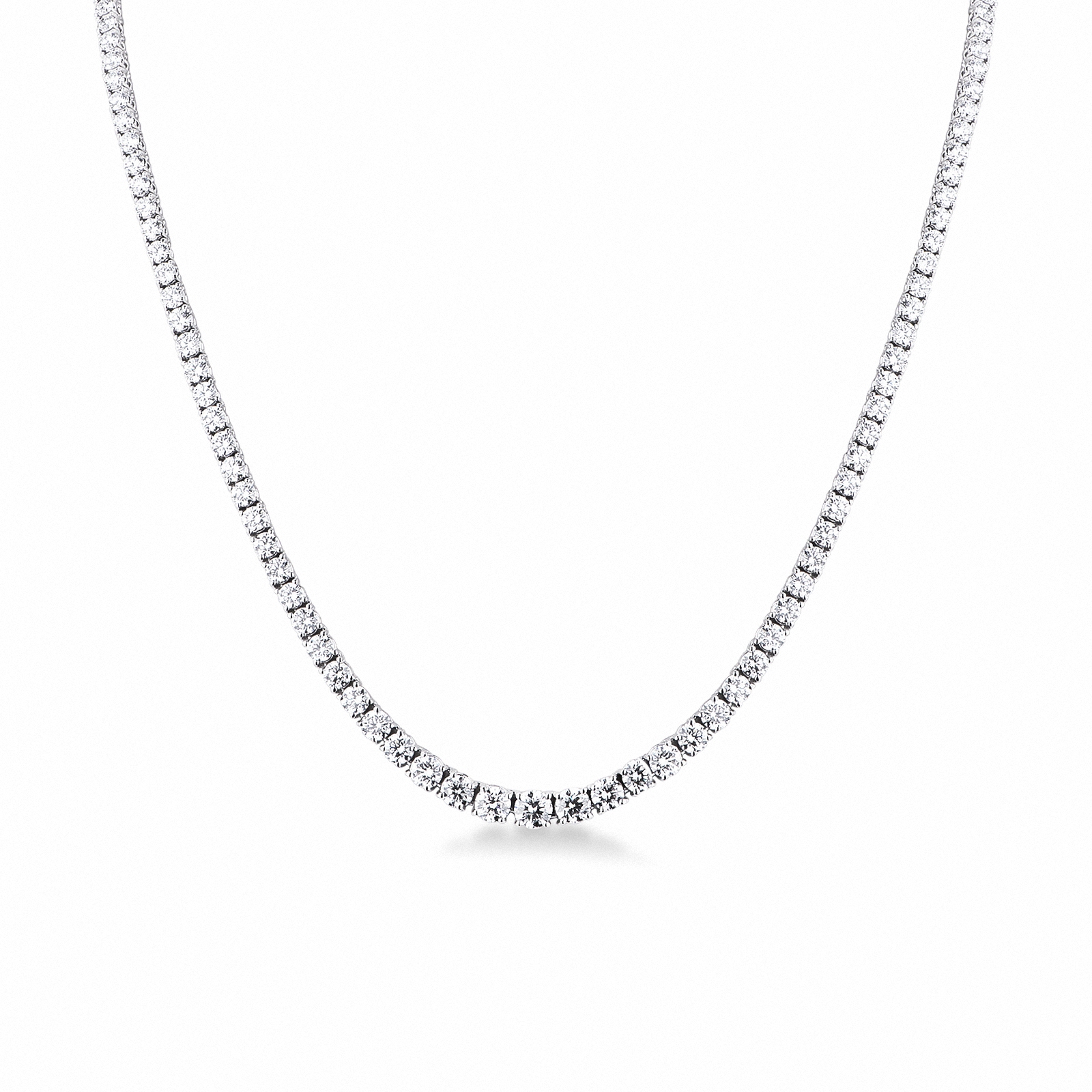 Girocollo tennis griffe filo a scalare in oro bianco 18k con diamanti taglio brillante, colore G, purezza Vs. La caratura potrà variare in base alla misura.
