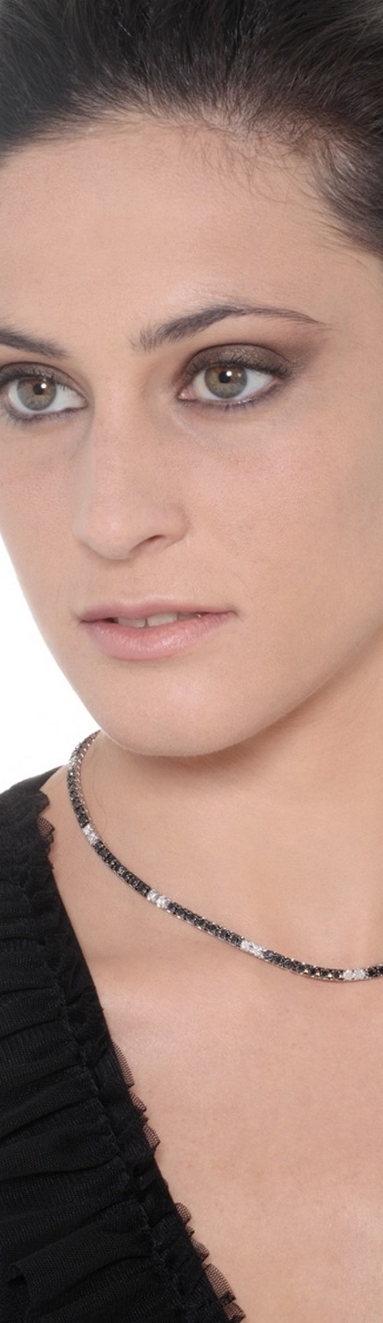 Collana tennis in oro bianco 18k con diamanti neri e bianchi, punte brunite