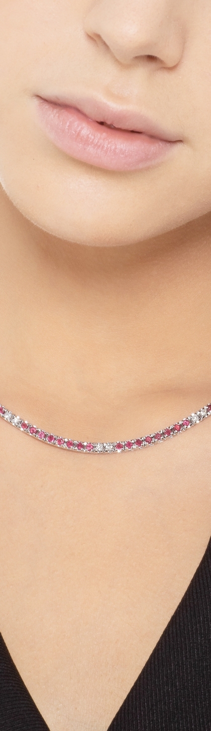 Collana tennis in oro bianco 18k con rubini e diamanti