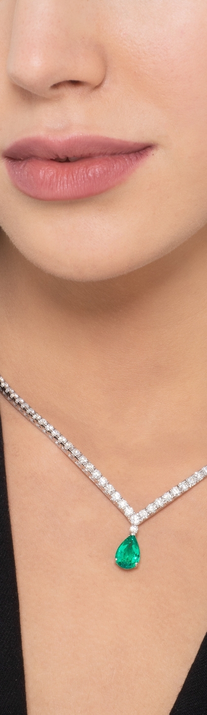 Collana tennis in oro bianco 18k in diamanti e smeraldo.