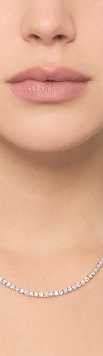 Collana tennis in oro bianco 750 con diamanti taglio brillante, colore G, purezza Vs.