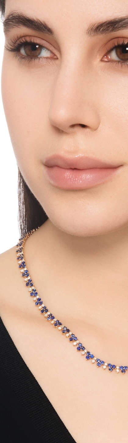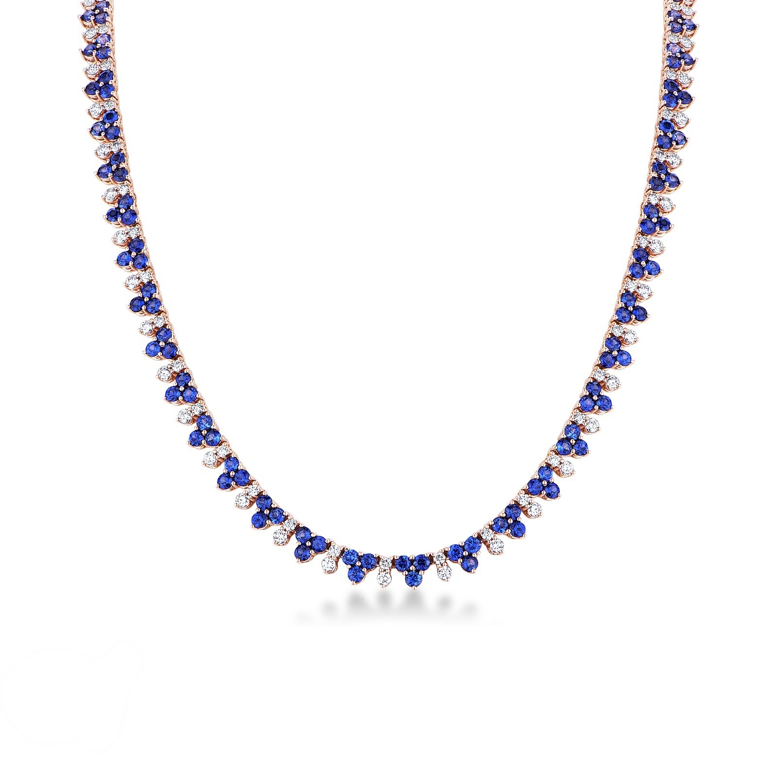 Girocollo tennis in oro rosa 750 con diamanti e zaffiri blu