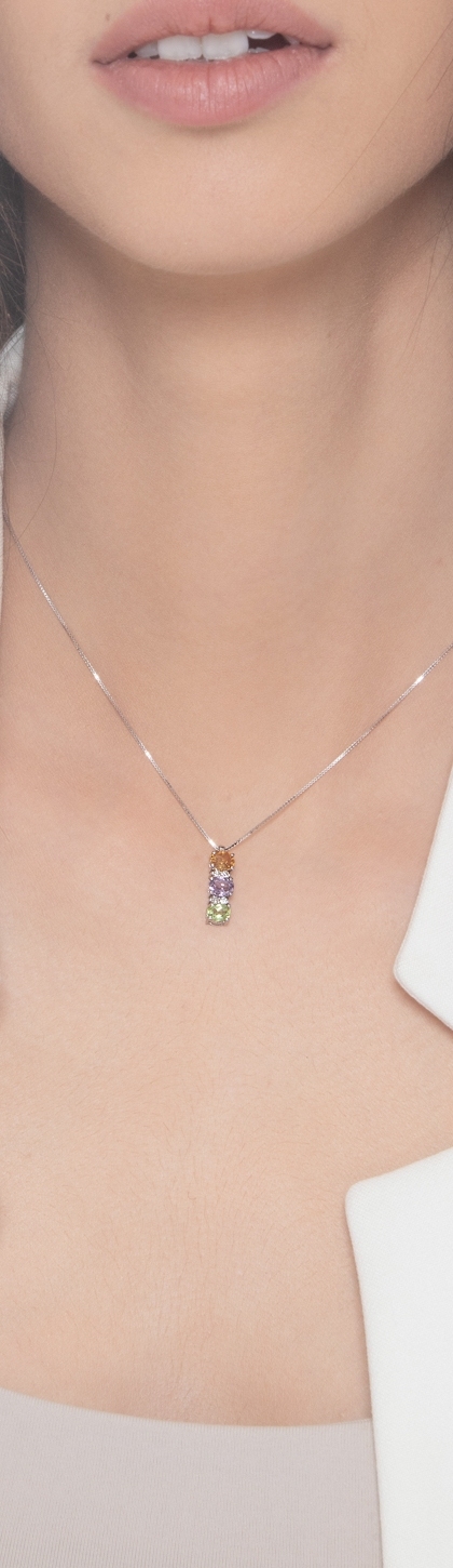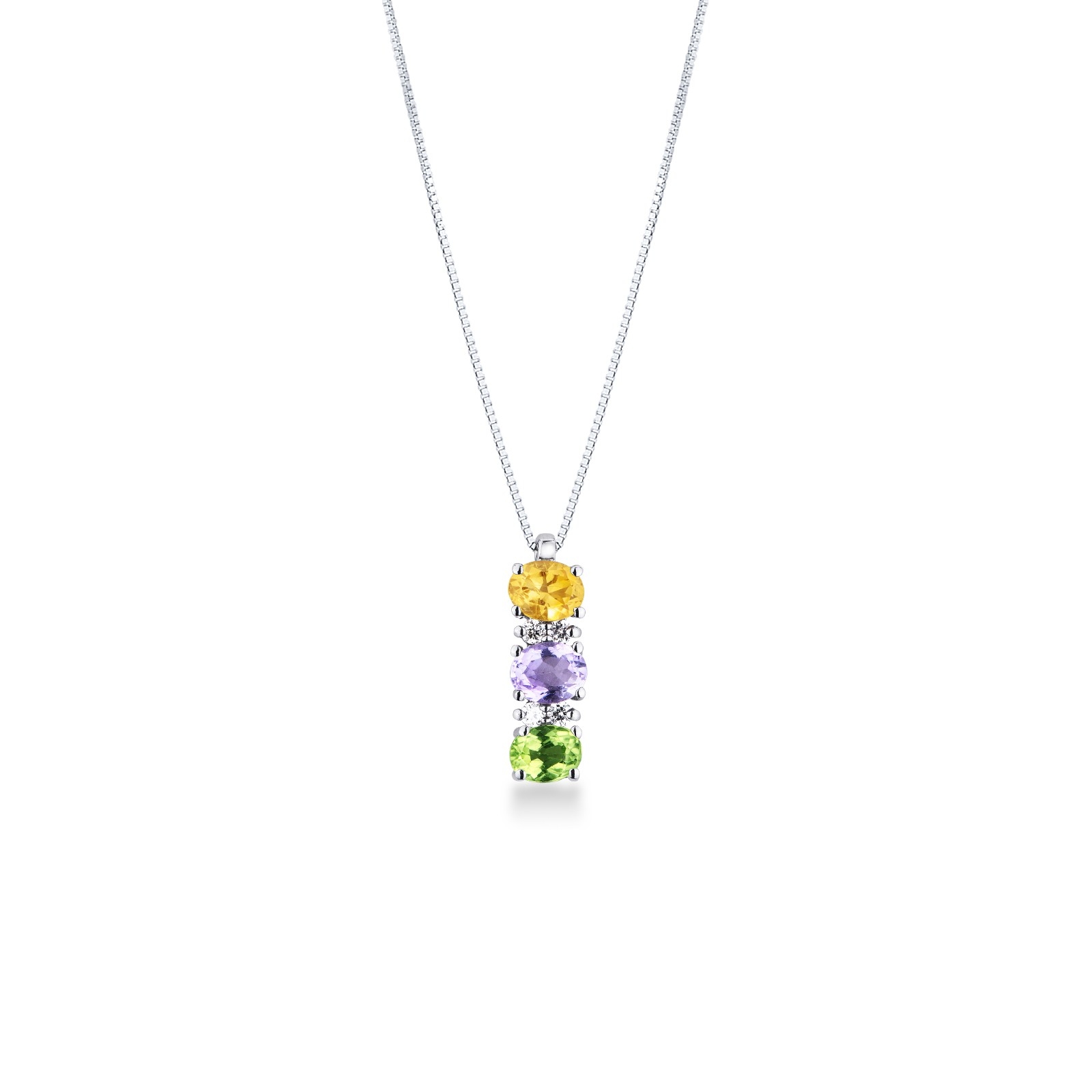 Tre gemme, tre colori, una sola luce: citrino, ametista e peridoto si uniscono ai diamanti in un ciondolo che racconta la bellezza in tutte le sue sfumature. ✨