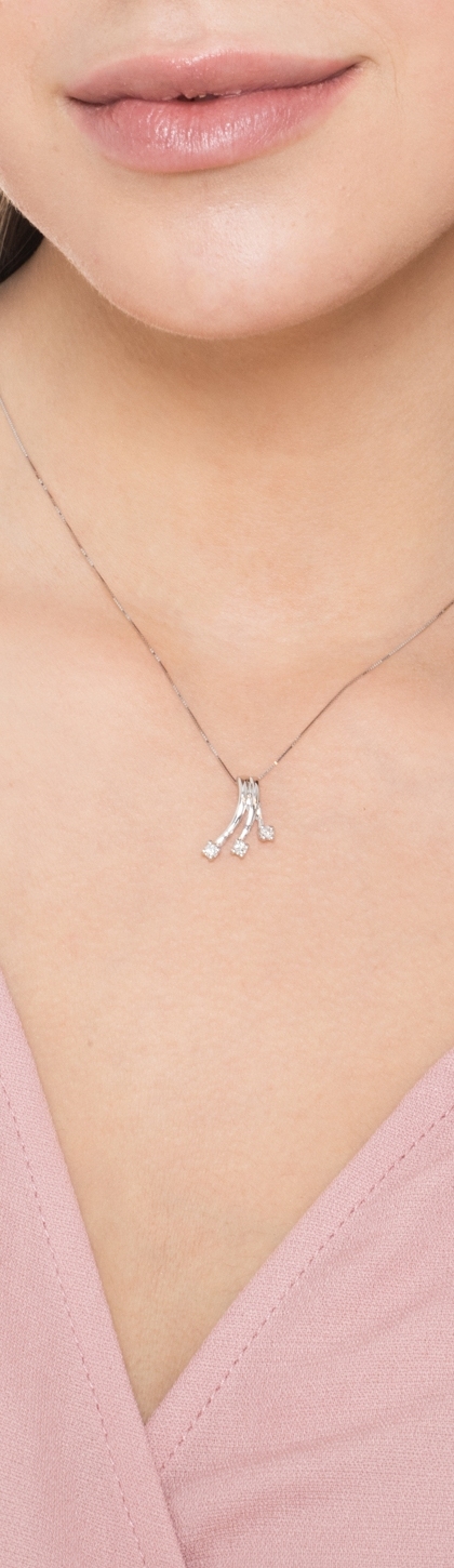Collana con ciondolo modello trilogy in oro bianco 18k e diamanti, cm 1.35x1.75
