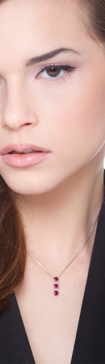 Collana in oro bianco 18k con ciondolo trilogy in rubini e diamanti