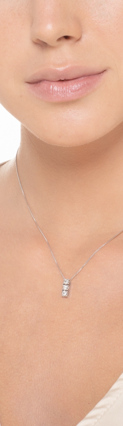 Collana in oro bianco 18k con pendente trilogy di circa 10x3.90 mm in diamanti