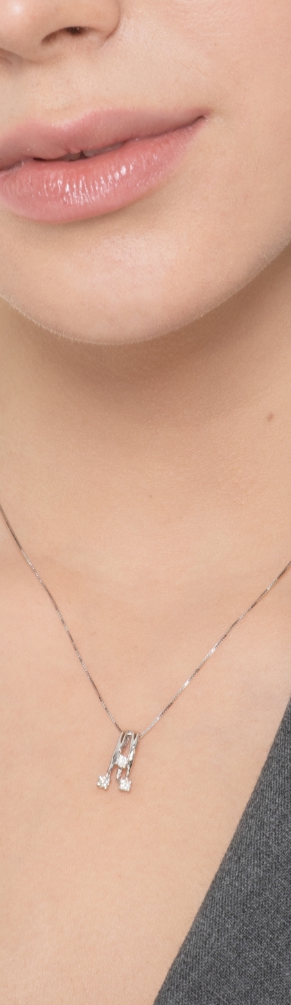 Collana in oro bianco 18k con pendente trilogy in diamanti