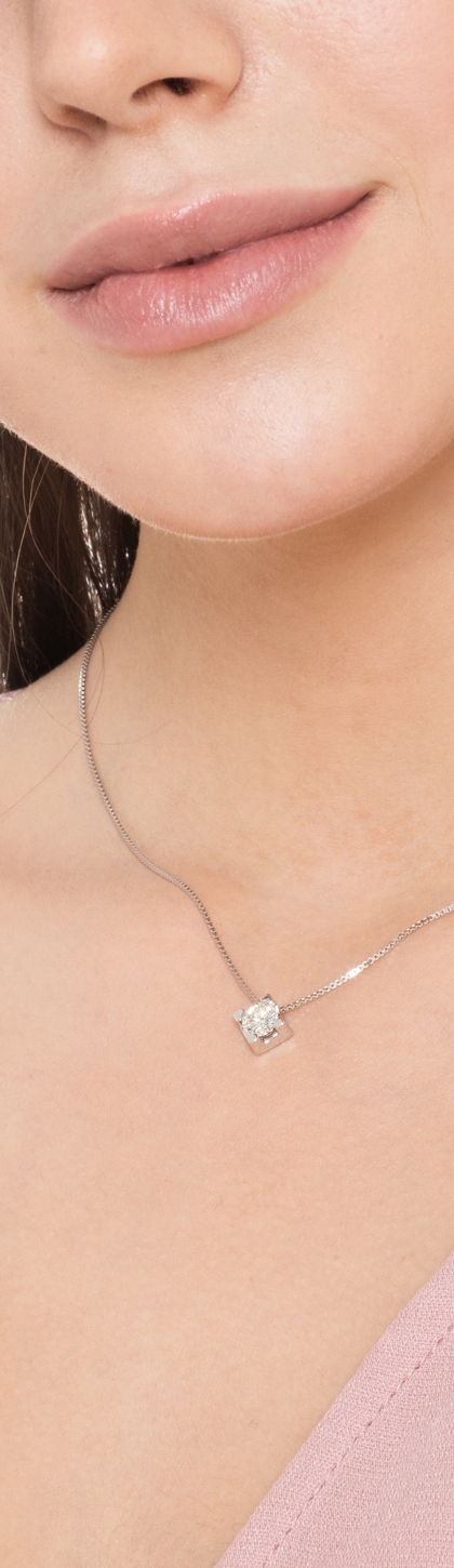Collana punto luce a rombo in oro bianco 18k con diamante di 0.70 ct