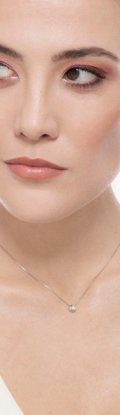 Collana punto luce cipollina in oro bianco 18k con diamante, ct 0,07