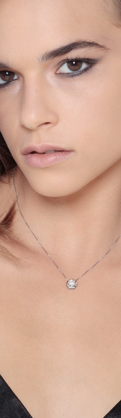Collana punto luce cipollina in oro bianco 18k con diamante, ct 0,50