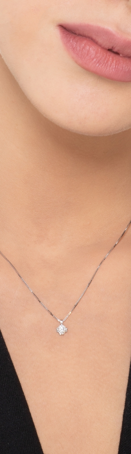 Collana punto luce in oro bianco 18k con diamante taglio brillante, colore G, purezza Vs.