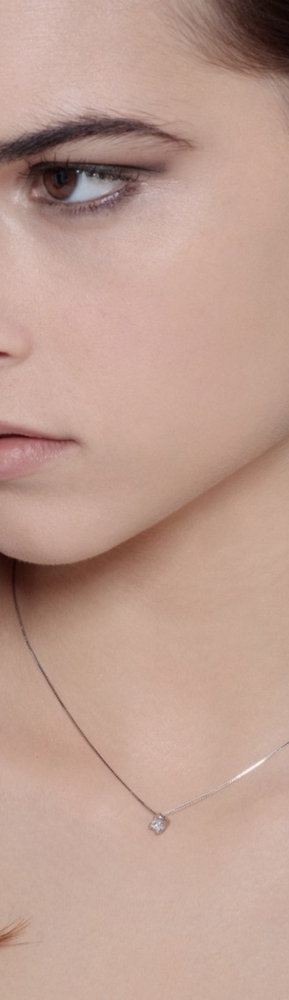 Collana in oro bianco 18k montatura a castone con diamante taglio brillante.