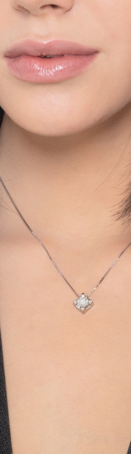 Collana in oro bianco 18k con diamante taglio brillante colore G e purezza VS2.
