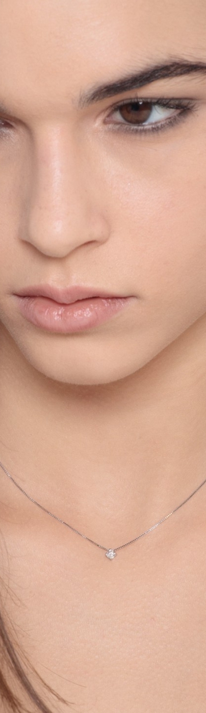 Collana in oro bianco 18k montatura a castone con diamante taglio brillante colore G e purezza Vs.