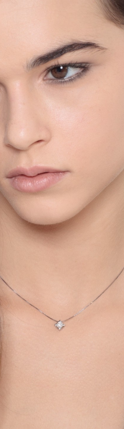 Collana in oro bianco 18k con diamante colore G e purezza Vs.