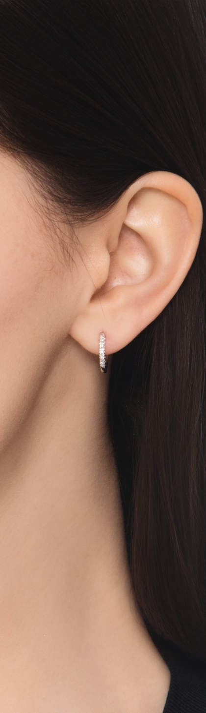 Mono orecchino a cerchio in oro bianco 18k con diamanti, ct. 0,04
