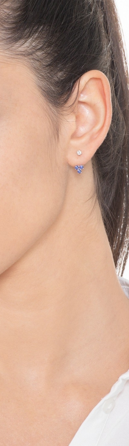 Mono orecchino a lobo in oro bianco 18k con diamante e 3 zaffiri blu
