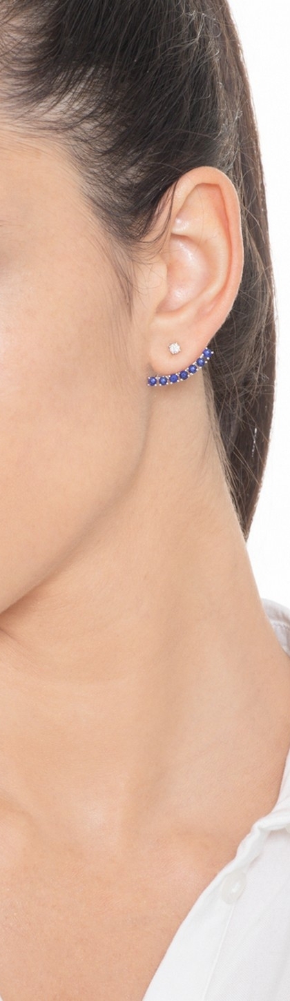 Mono orecchino a lobo in oro bianco 18k con diamante e zaffiri blu