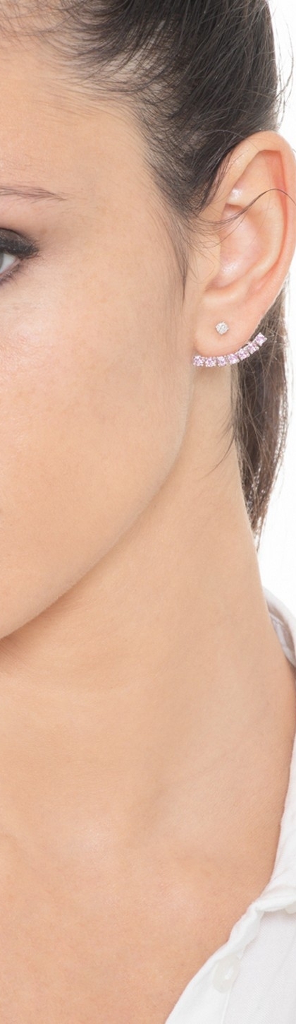 Mono orecchino a lobo in oro bianco 18k con diamante e zaffiri rosa