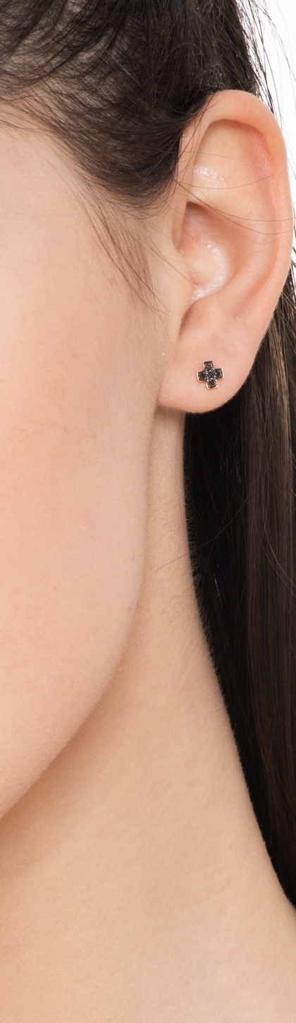 Mono orecchino a lobo in oro rosa 18k con croce in diamanti neri e punte brunite