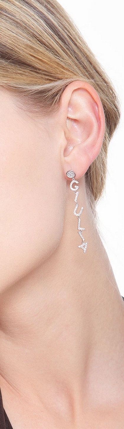 Mono orecchino con scritta personalizzabile in oro Bianco 18k e diamanti, GIULIA