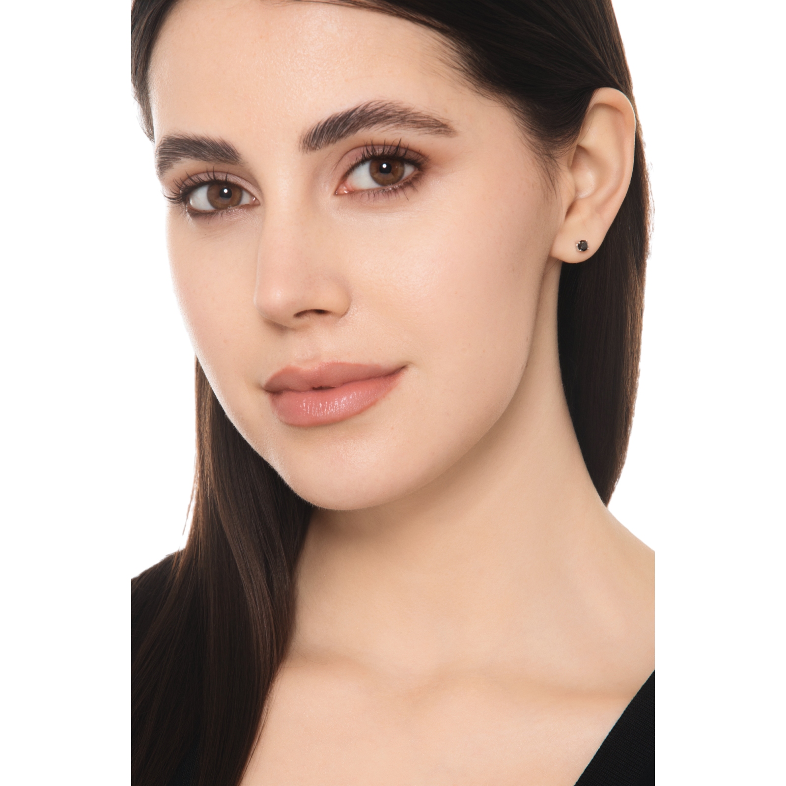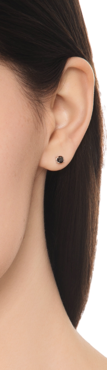 Mono orecchino in oro bianco 18k a 4 griffe con diamante nero, 0.22 ct