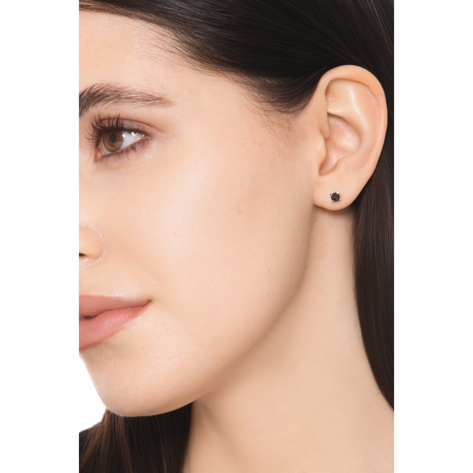 Mono orecchino in oro bianco 18k a 4 griffe con diamante nero, 0.25 ct