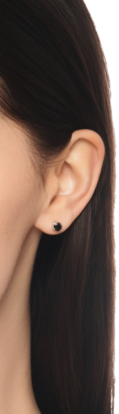 Mono orecchino in oro bianco 18k a 4 griffe con diamante nero, 0.40 ct