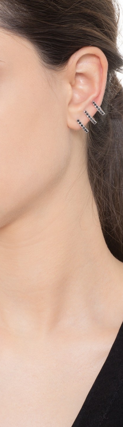 Mono orecchino in oro bianco 18k con 3 cerchi di diamanti neri, earcuff sinistro