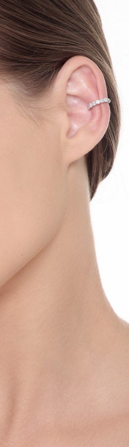 Mono orecchino in oro bianco 18k con incastonati diamanti taglio brillante colore G e purezza Vs. Diametro interno 9 mm.