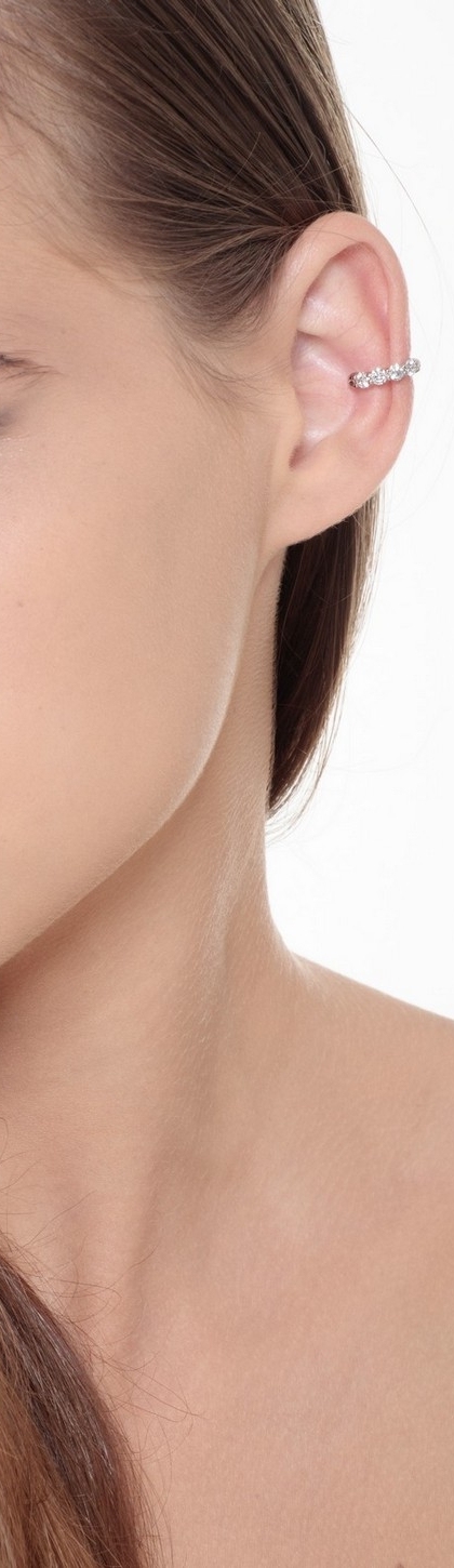 Mono orecchino da cartilagine in oro bianco 18k con incastonati diamanti taglio brillante colore G e purezza Vs. Diametro interno 9 mm.