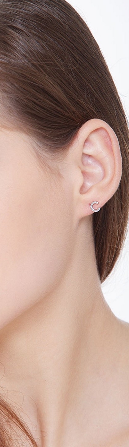 Mono orecchino in oro Bianco 18k con lettera C in diamanti