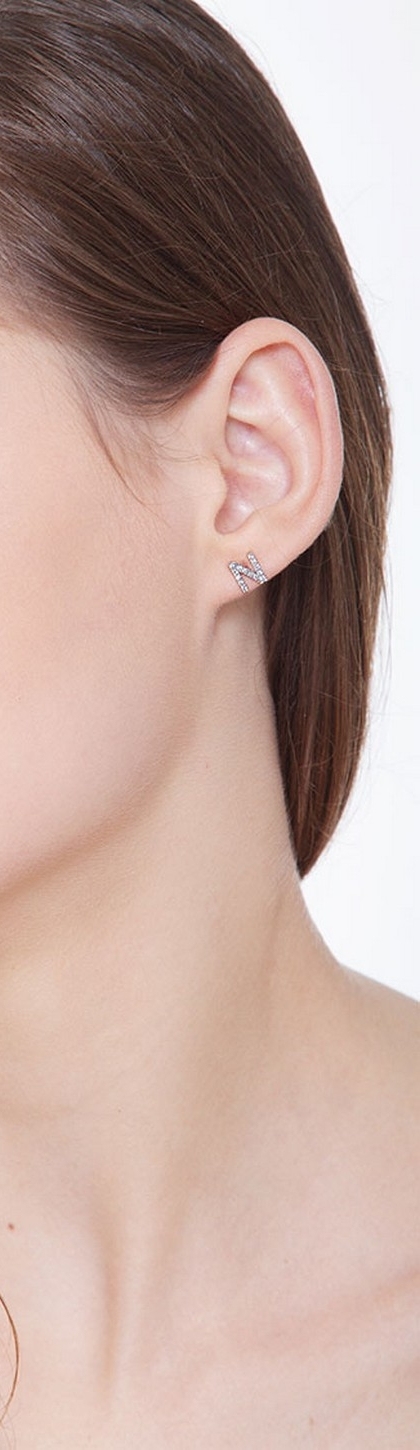 Mono orecchino in oro Bianco 18k con lettera N in diamanti