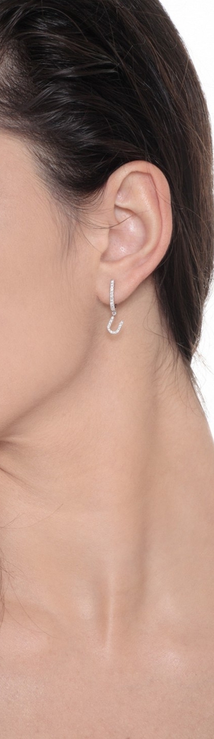 Mono Orecchino in Oro Bianco 18k con lettera U in Diamanti, ct. 0,15