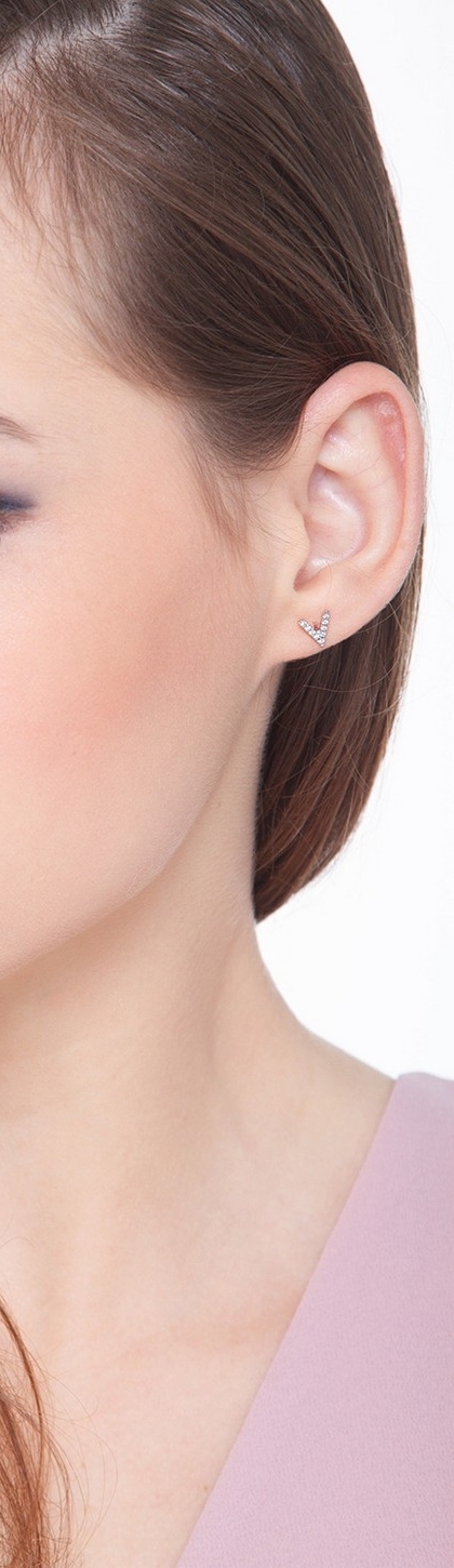 Mono orecchino in oro Bianco 18k con lettera V in diamanti