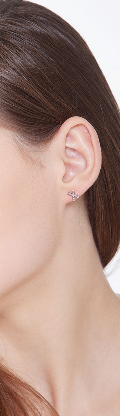 Mono orecchino in oro Bianco 18k con lettera X in diamanti