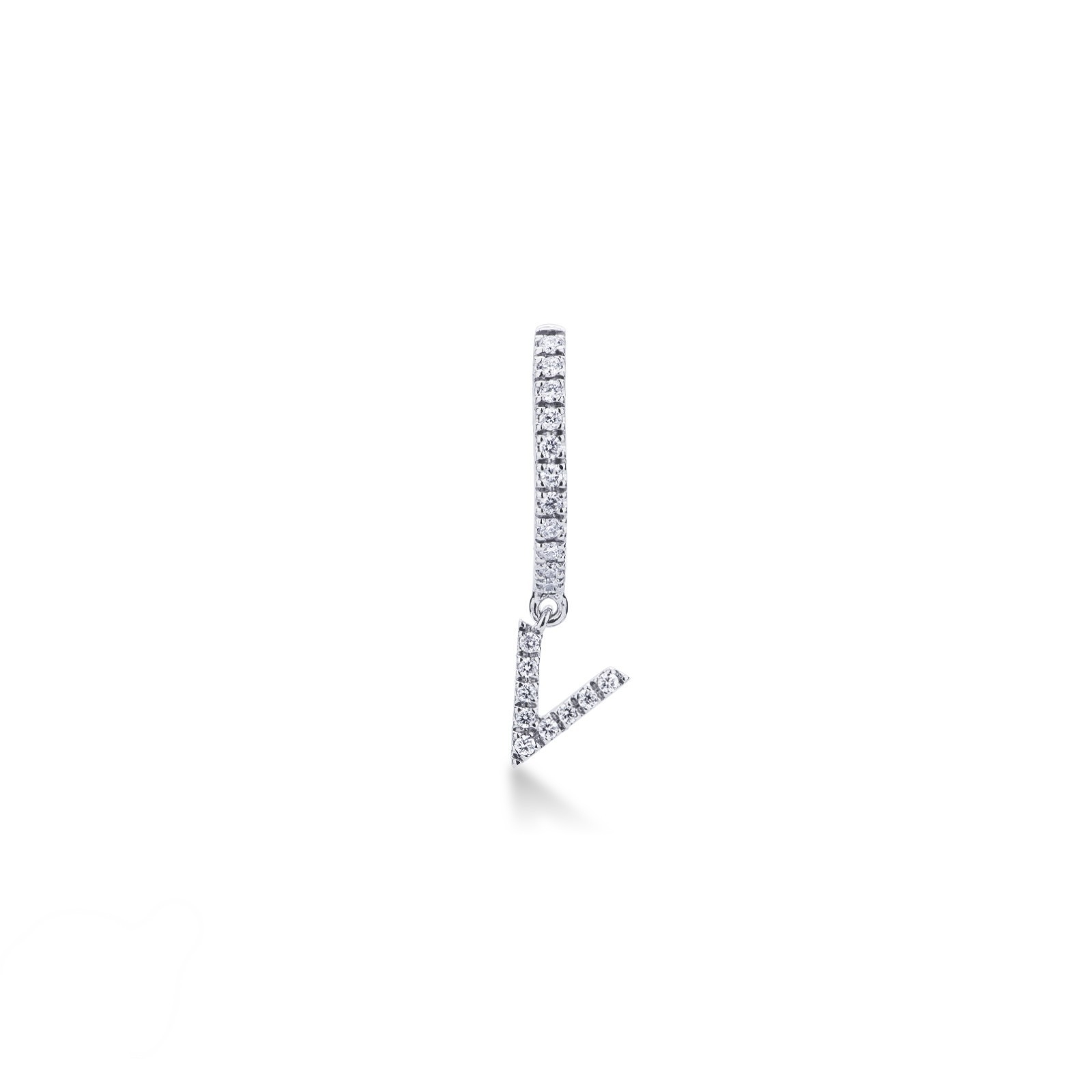 Single earring with pendant letter V with diamonds
