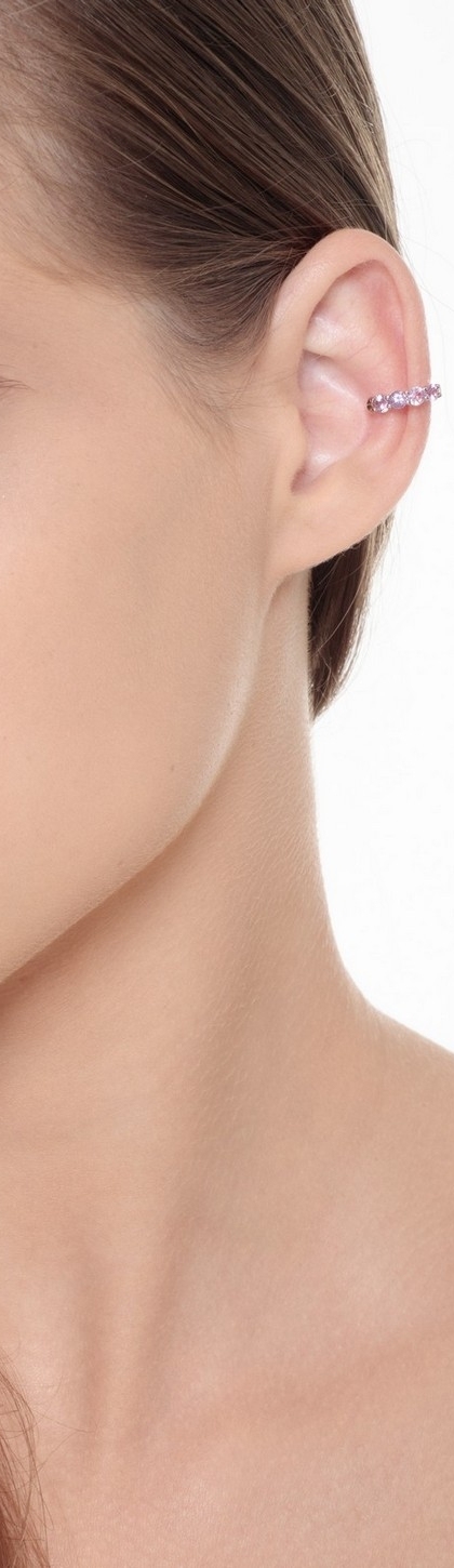 Mono orecchino da cartilagine in oro bianco 18k, con incastonati zaffiri rosa taglio brillante. Diametro interno 9 mm.