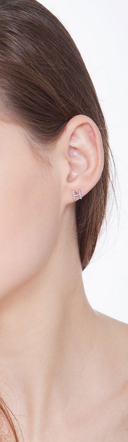 Mono orecchino a lobo in oro Bianco 18k con lettera H in diamanti