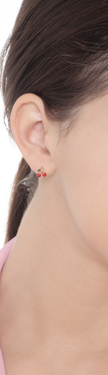 Orecchini a ciliegia in oro giallo 18k e smalto.